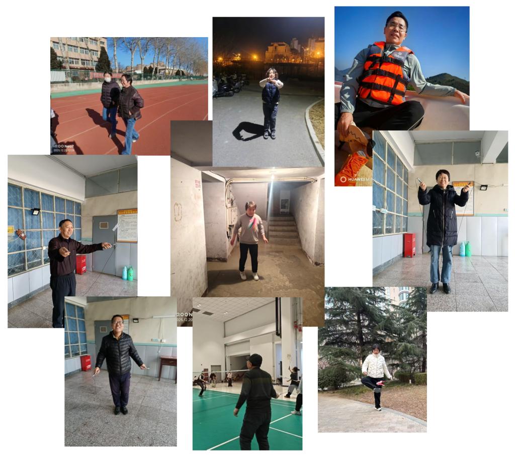 本次活动以“冬日‘趣’运动”为主题,采用线上自主运动打卡形式开展,地点不限、方式灵活,充分兼顾了教学科研与管理服务的工作节奏,方便教职工合理安排时间参与。活动期间,老师们走出办公室、迈向操场与街巷,或迎着晨光徒步健行,或借助课余慢跑舒展,或在暮色中骑行释压,也有人选择球类运动强健体魄。大家用一张张照片记录运动瞬间、定格健康风采:镜头里有步伐、有汗水,更有精气神;有冬日的清冽,也有生活的热烈。每一次打卡,都是对自我管理的提醒;每一次坚持,都是对美好生活的奔赴。