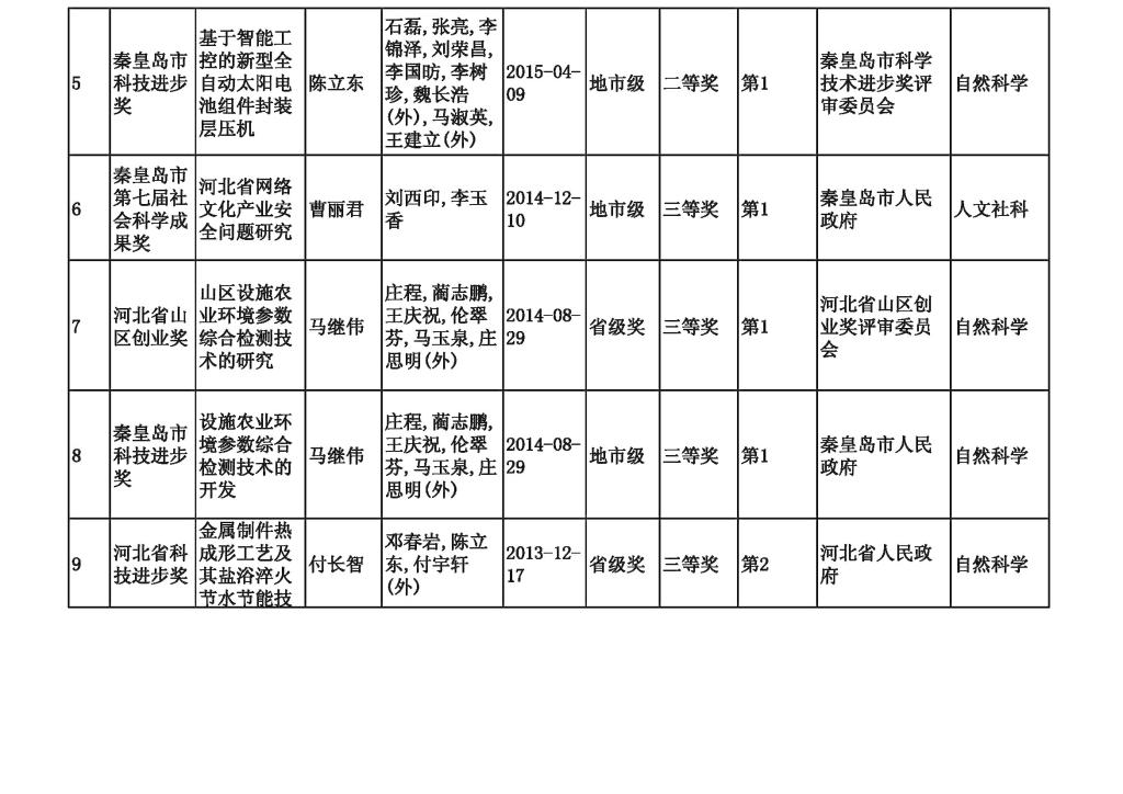 kaiyun开云官方网站近三年(2015-2017)获得各级科研奖励情况