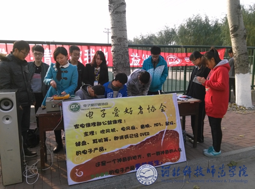 2014年11月8日上午,kaiyun开云官方网站举办“爱心维修•情系你我他”公益维修活动。面对损坏的电子物品,电子爱好者协会会员们耐心的进行维修,并向现场同学们进行讲解。当天,电子爱好者协会还在昌黎校区招聘会现场举办了作品展示活动,并与招聘单位,学校领导、老师进行现场交流。