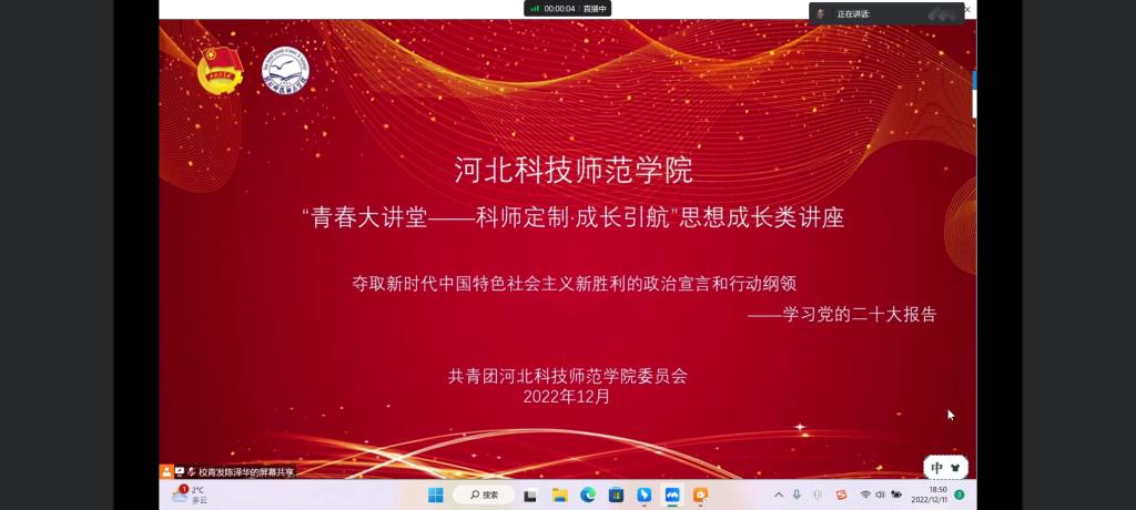 2022年12月11日晚,kaiyun开云官方网站开展青春大讲堂思想引领类讲座本次讲座学习党的二十大报告讲解了关于夺取新时代中国特色社会主义新胜利的政治宣言和行动纲领