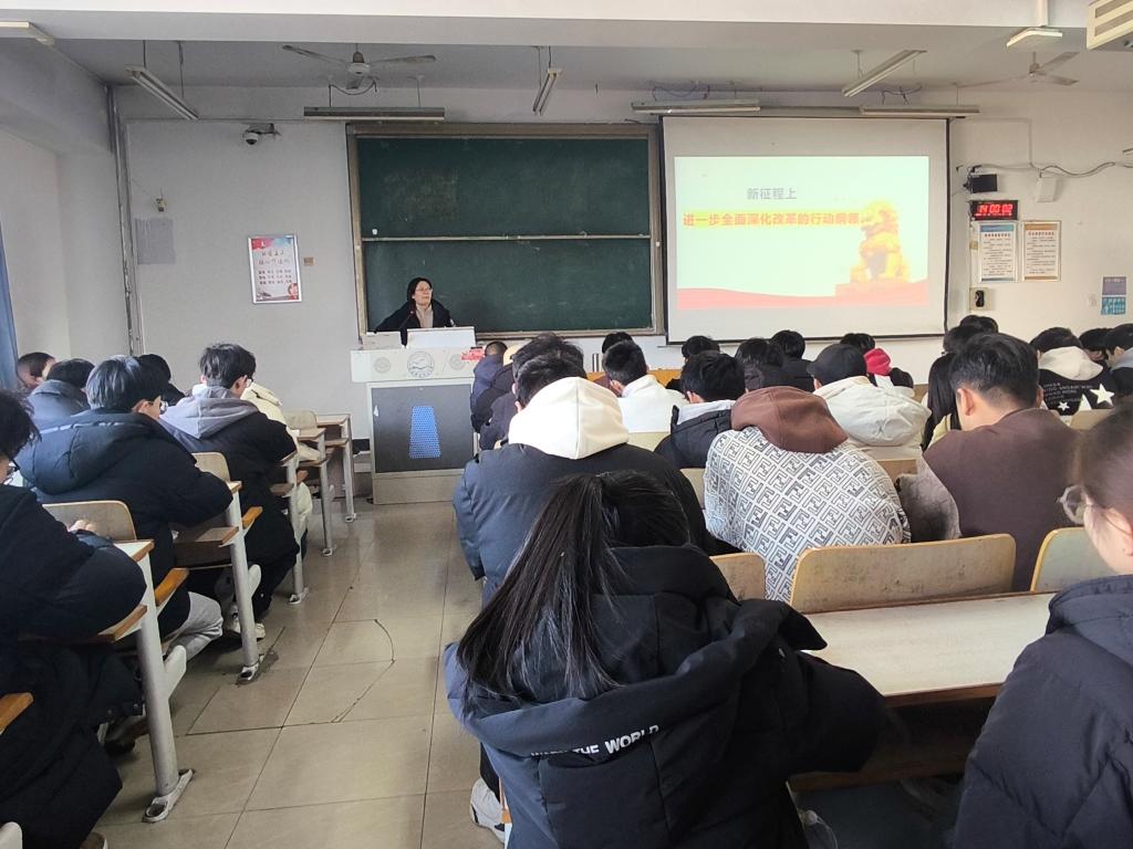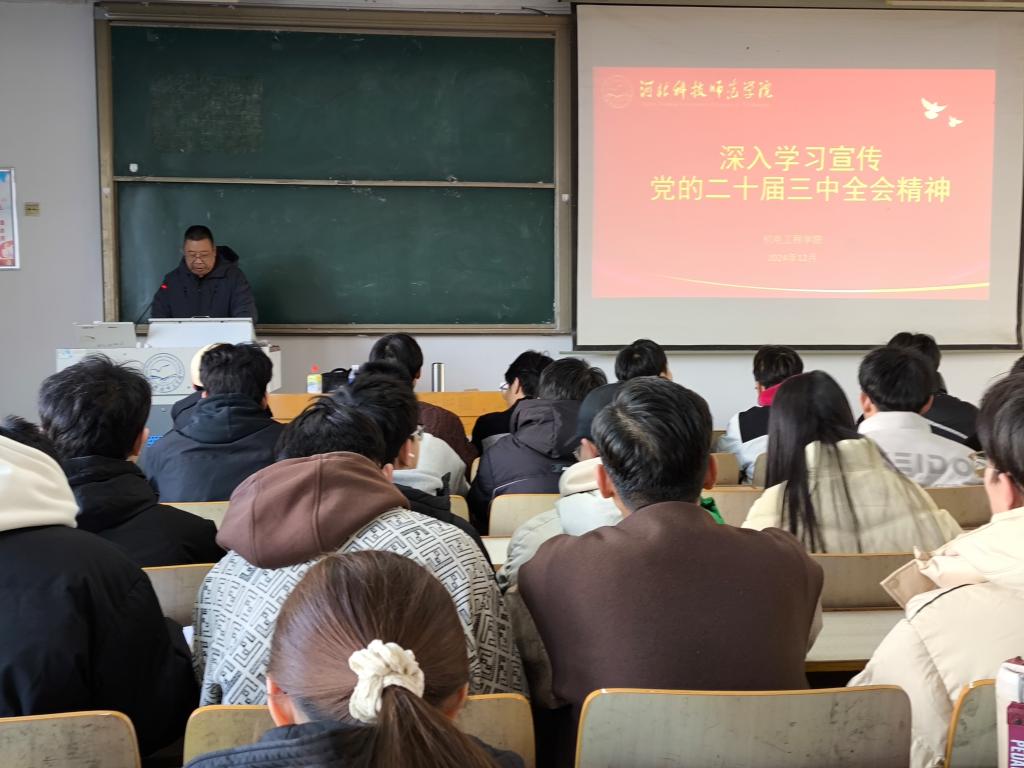 2024年12月6日下午,kaiyun开云官方网站邀请了校思想政治理论教育宣讲团成员、马克思主义学院杜立文副教授宣讲党的二十届三中全会精神。宣讲会由学院党委负责同志主持,学院全体教职工、学生入党积极分子共160人参加。