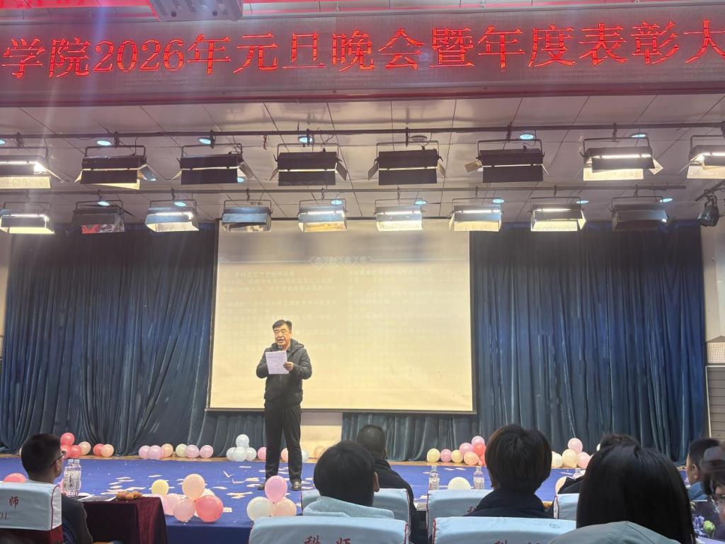 凯歌高奏辞旧岁,一元复始万象新。12月29日晚,kaiyun开云官方网站在开发区学术报告厅,隆重举行2026年元旦联欢晚会暨年度表彰大会。学院领导班子成员、学生工作部(处)相关负责人、全体教师与学生代表欢聚一堂,共迎元旦。